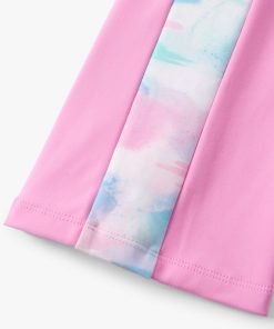 Designed for motion and made to stand out, the Girls Fuchsia Pink Active Flared Pants are crafted from a stretchy, breathable jersey blend that moves with her. The vibrant fuchsia pink hue brings energy to every activity, while a wide two-piece waistband with an adjustable drawcord ensures a comfy, secure fit. White side panels featuring a cloud-like multicoloured watercolour print add a playful contrast, and subtle back leg slits deliver an extra touch of flair with every step.