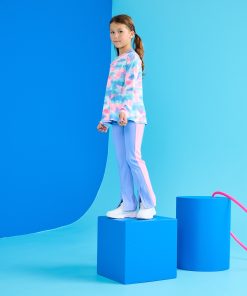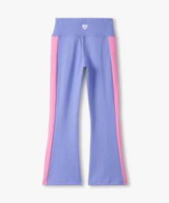 The Girls Purple Active Flared Pants are made for movement with a stretchy, breathable jersey blend that keeps up with every twist, turn, and tumble. Designed in a rich purple tone, they feature a wide two-piece waistband with an adjustable drawcord for a secure, flexible fit. A pop of contrast comes from the pink side seam panels, while subtle back leg slits add flow and flair.