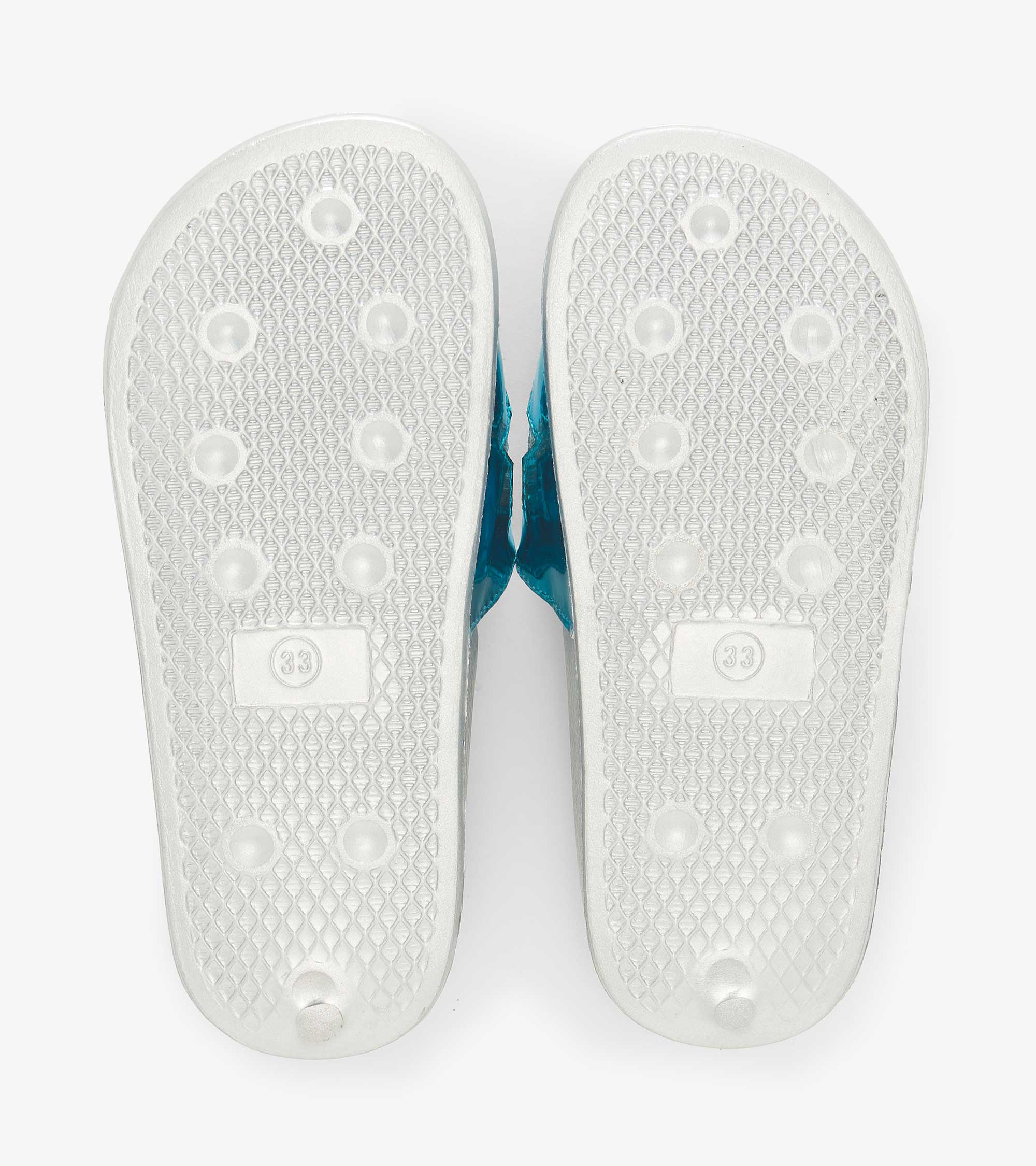 Let her strut into summer with the Girls Super Star Slides! These comfy slides sparkle with every step, making them a perfect match for pool days or casual outings. Easy to wear and so fun to show off!