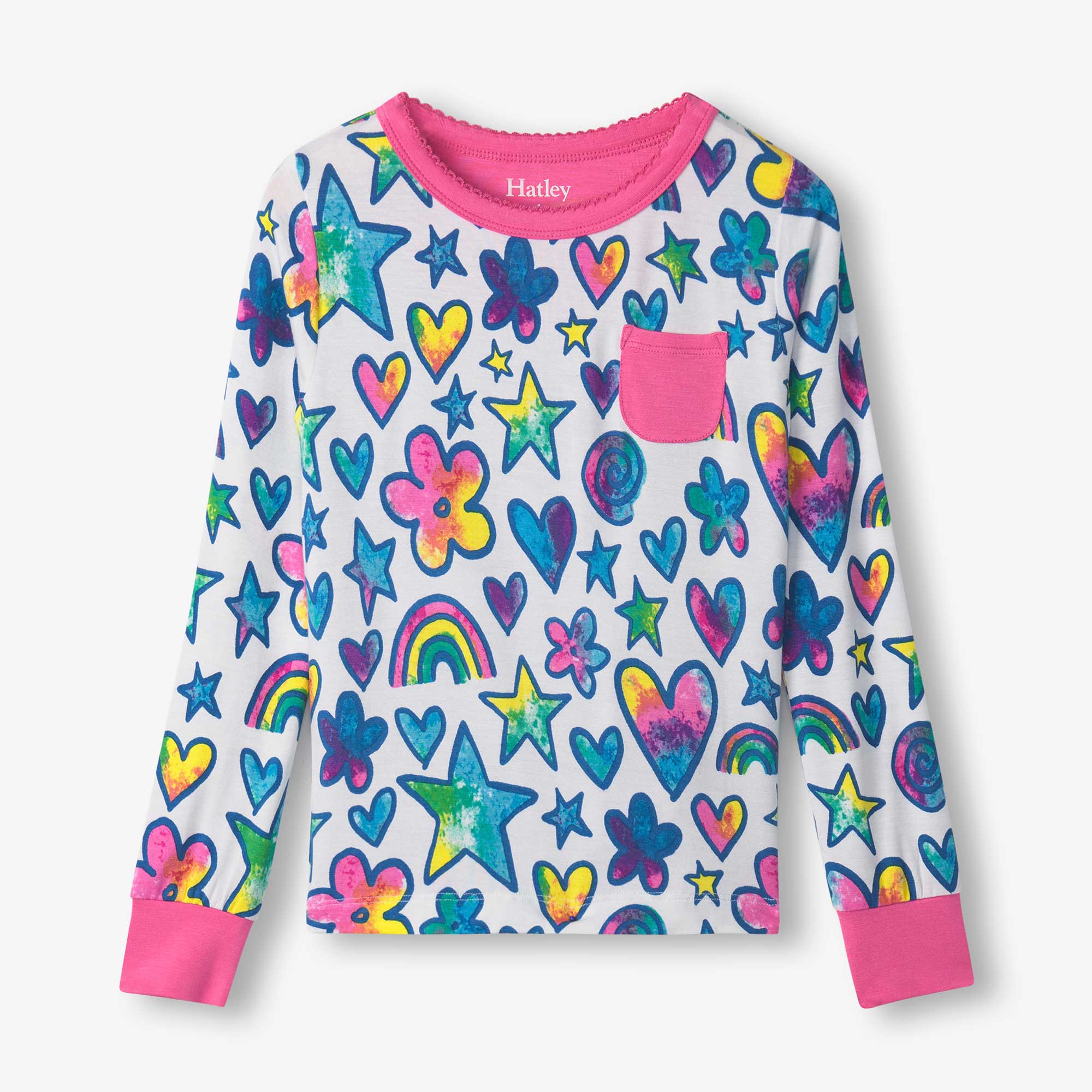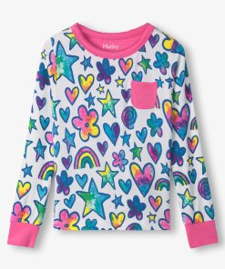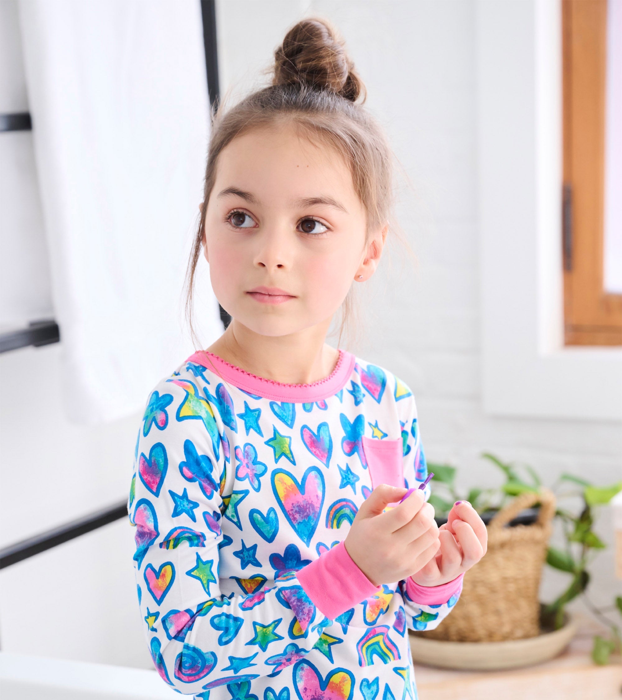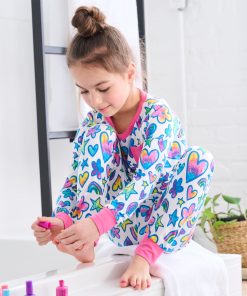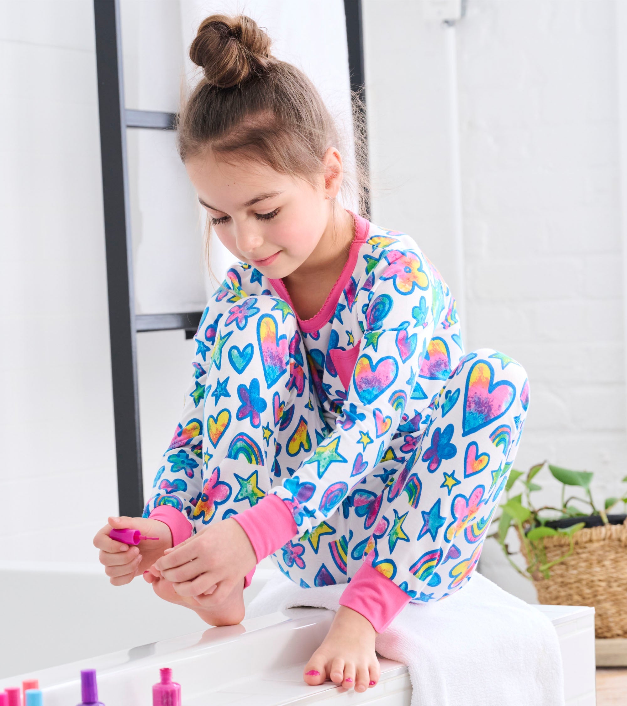 Inspire creativity with the Girls Watercolour Doodles Bamboo Pajama Set! This soft bamboo set includes a top and bottoms featuring whimsical watercolor-style designs. The lightweight fabric and relaxed fit make it perfect for dreamy nights and lazy mornings. A cozy and artistic bedtime essential!