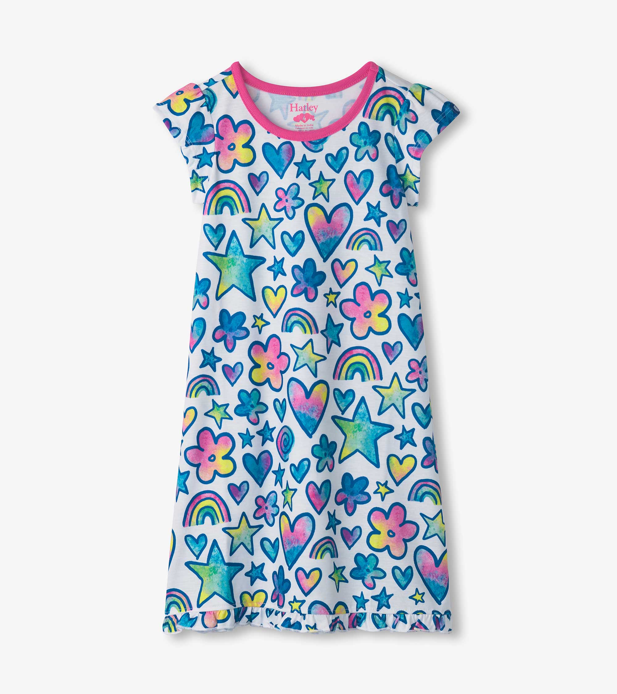 Inspire creativity at bedtime with the Girls Watercolour Doodles Nightdress! Made from silky polyester, this nightdress showcases artistic watercolor-style doodles that spark imagination. Comfortable and lightweight, it’s perfect for dreamy nights and relaxing mornings.