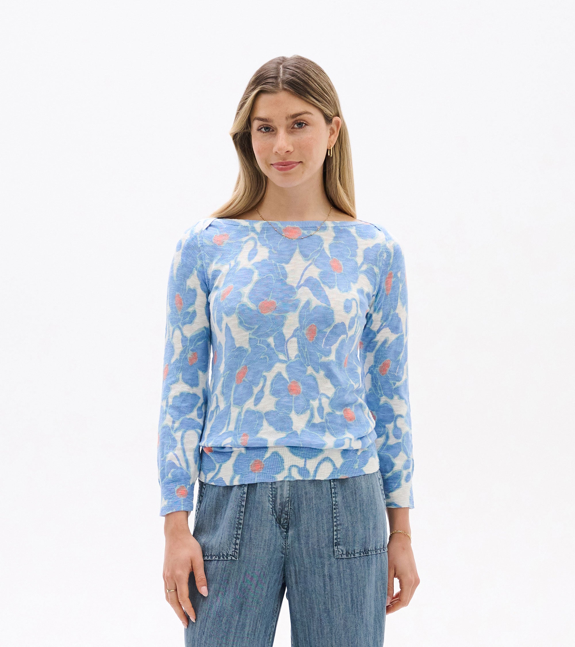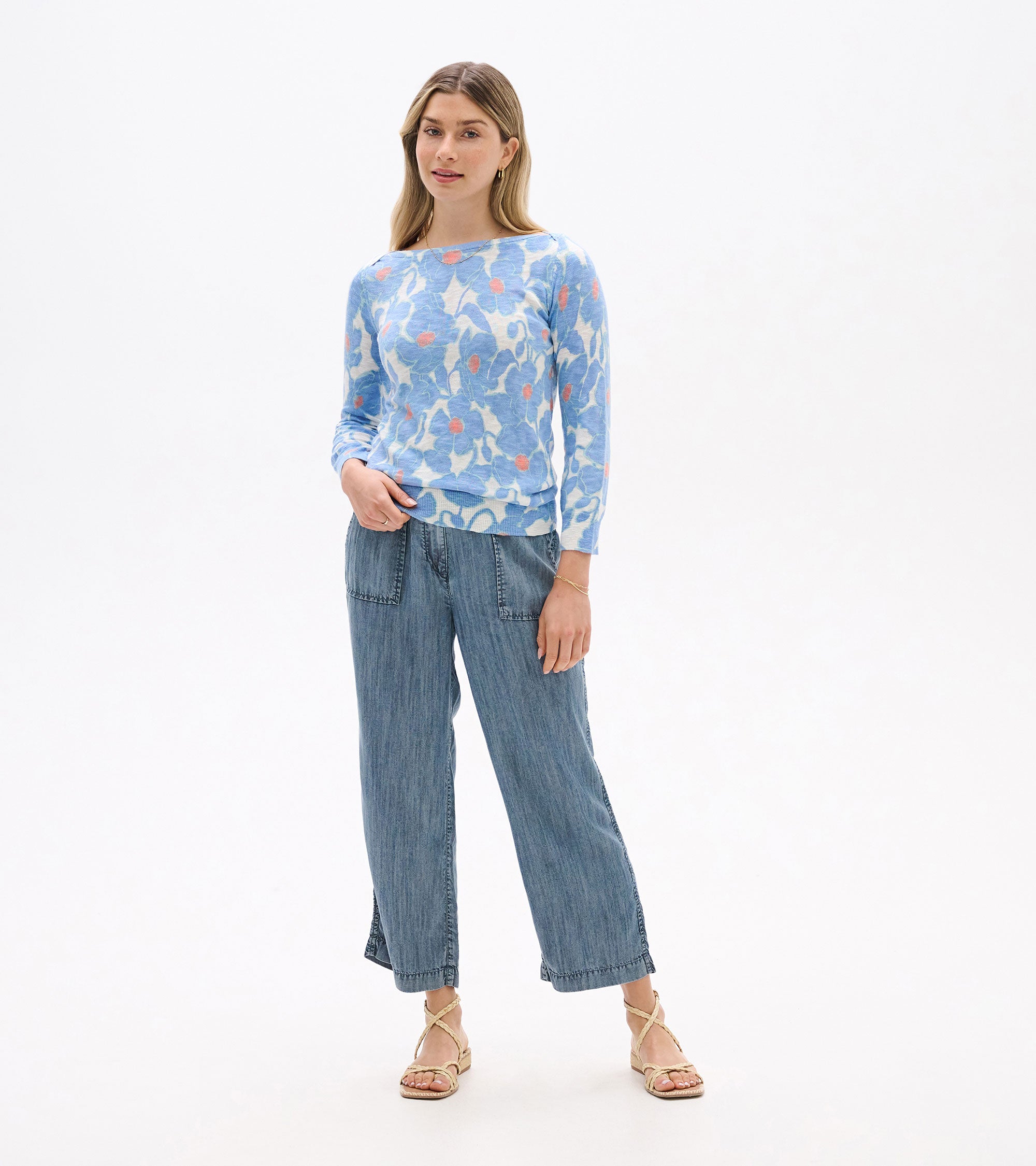 Experience elegance and simplicity with the 3/4 Sleeve Knit Breton in Textured Poppies. This top is crafted from a blend of cotton and viscose, offering a soft, comfortable feel with a bit of stretch. The 3/4 sleeves add a sophisticated touch, making it suitable for a variety of occasions.