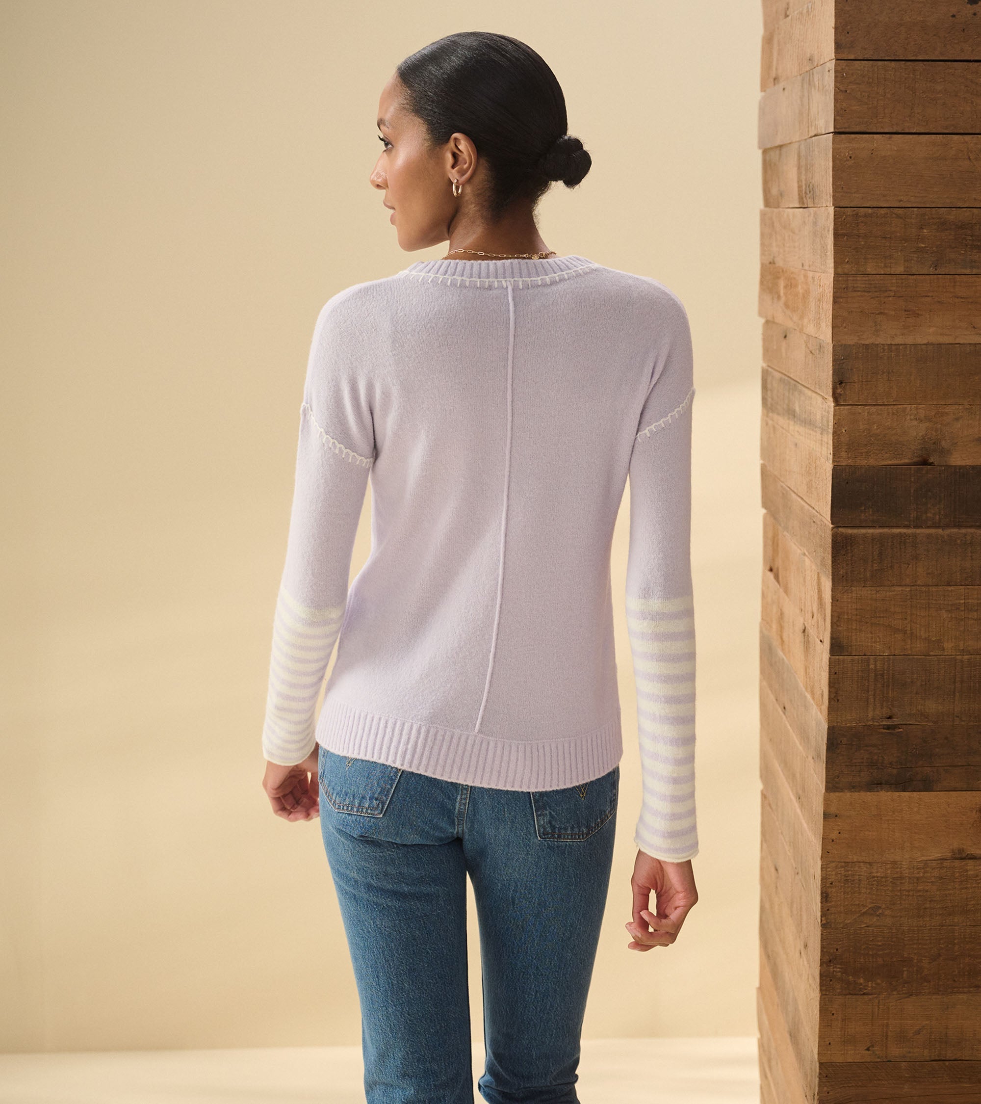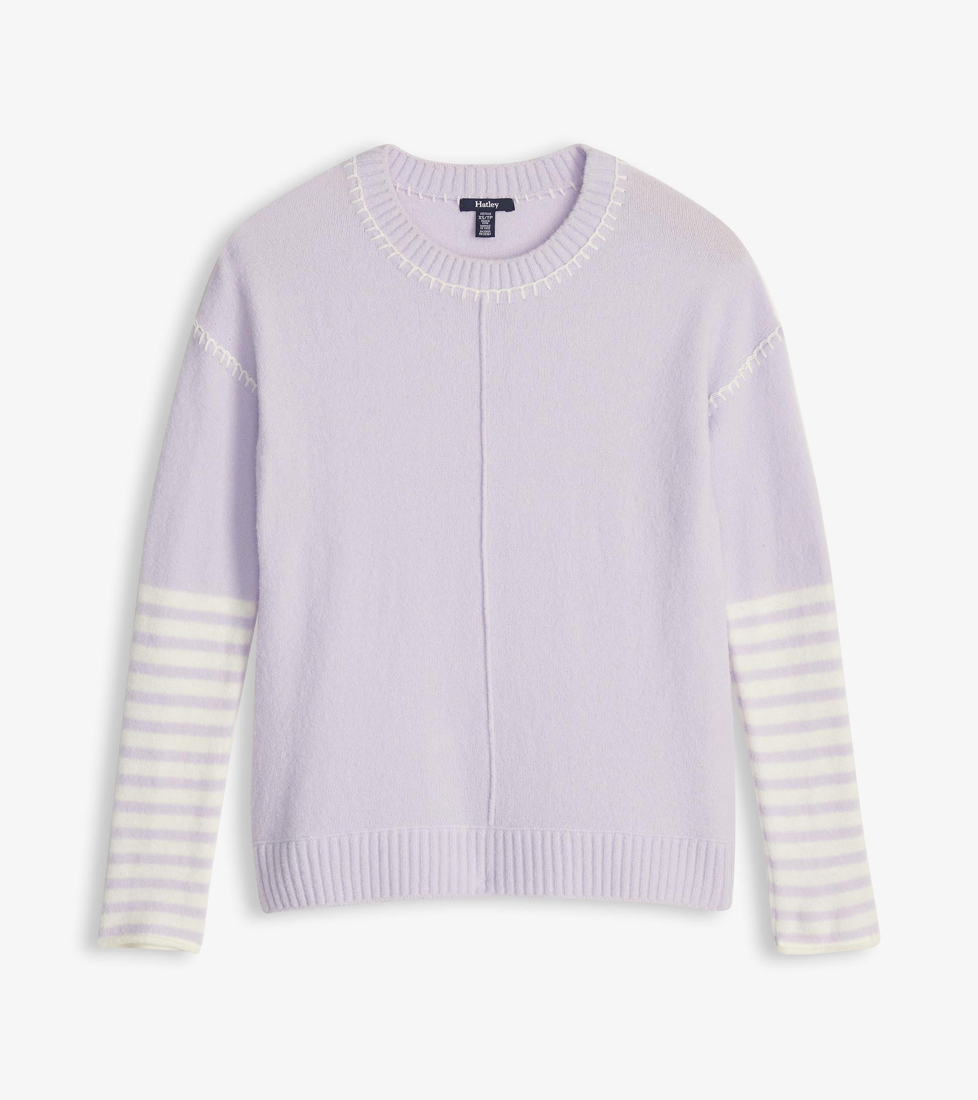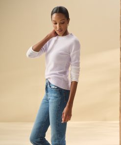 The Avery Sweater in lilac stripes is a playful and feminine addition to your wardrobe. Crafted from acrylic, nylon, and spandex, it offers both comfort and style. The soft lilac stripes bring a fresh and modern feel, making it a perfect choice for brightening up your everyday outfits.