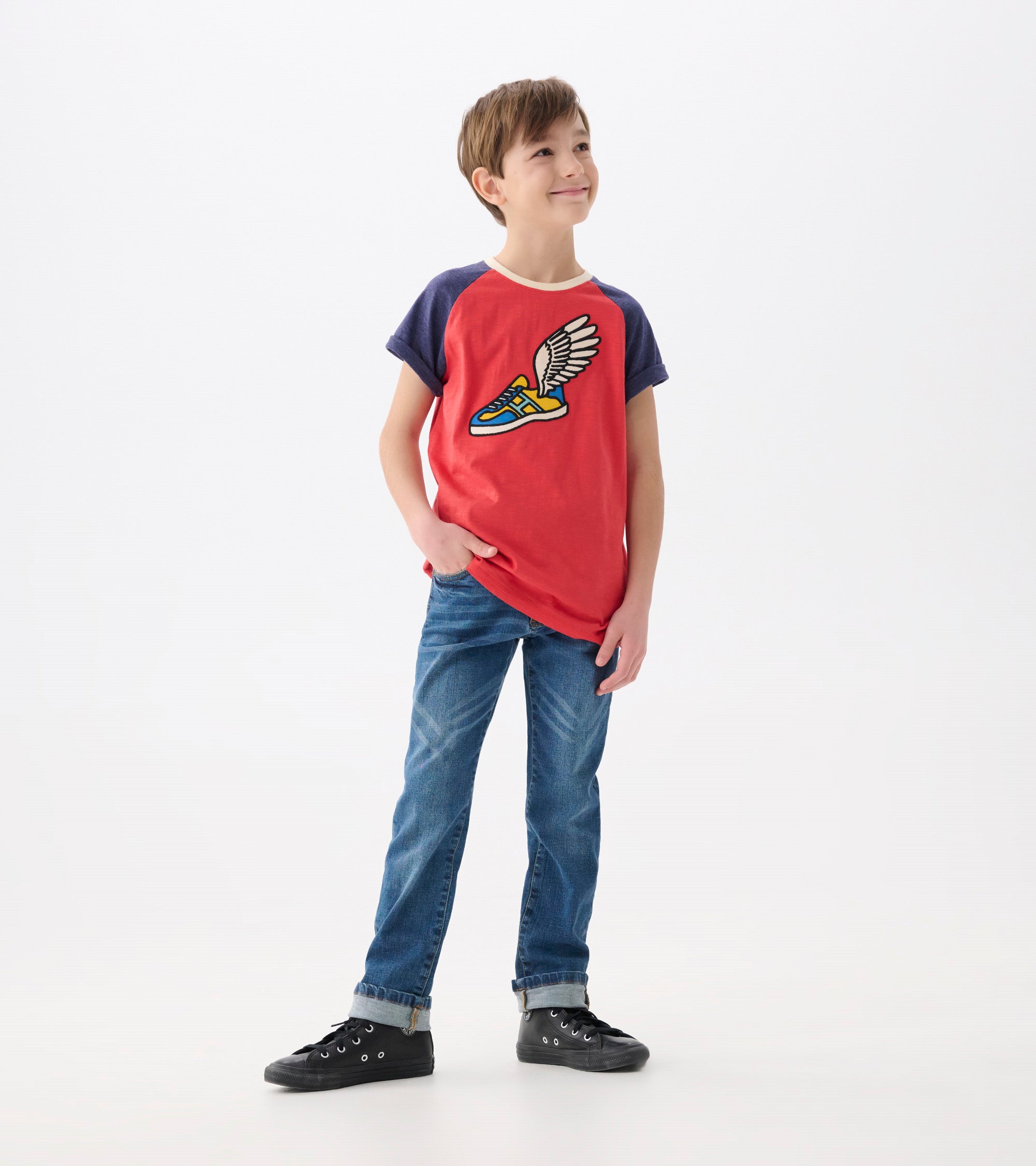 Let your little adventurer take flight in the Boys Fast Wings Raglan T-Shirt! Crafted from soft, breathable cotton, this tee is perfect for keeping up with high-energy play. The bold wing-inspired graphics spark imagination and make every outfit pop with personality. Designed with classic raglan sleeves, it ensures both comfort and style for all-day fun. Pair it with their favorite jeans or shorts for a versatile, everyday look.