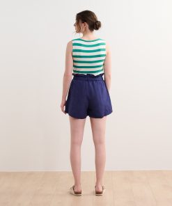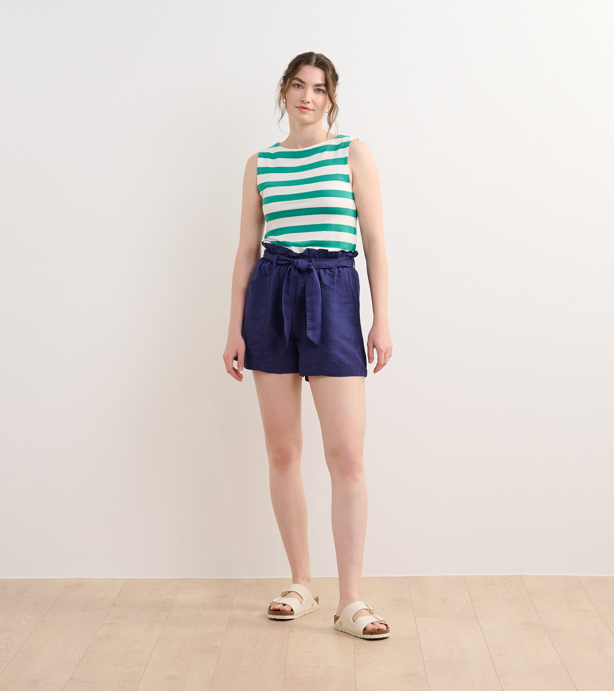 The Cassie Shorts in Patriot Blue are a chic and versatile summer essential. Made from a blend of linen and cotton, they offer pull-on styling, an elastic waist, a functional belt, and front pockets. The rich blue tone makes them perfect for pairing with neutral and bold tops. Add sandals or sneakers for a polished yet relaxed look.
