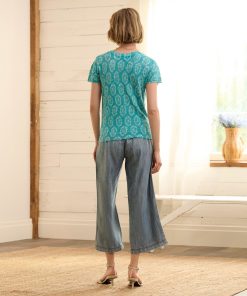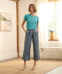 Cut from a soft, lightweight and breathable cotton, these culottes are trimmed with rows of embroidered details and designed with a generous fit with straight side seams and rounded slash front pockets. These pants can be worn with a tank for a casual look or dressed up with a blouse!