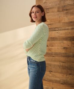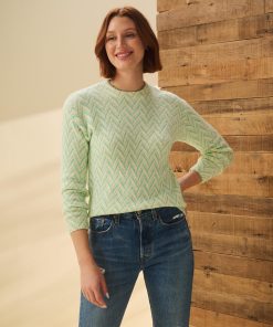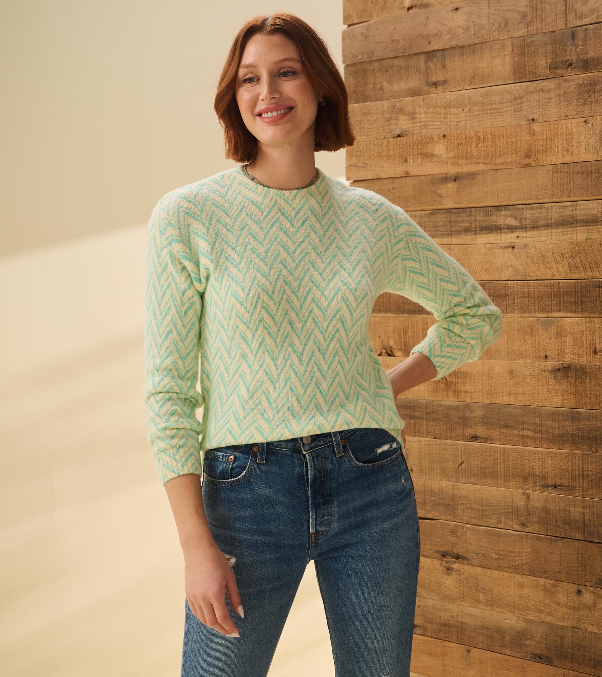 The Ella Sweater in chevron print is a stylish and contemporary piece, crafted from acrylic, nylon, and spandex. The bold chevron pattern adds visual interest, while the soft fabric ensures a comfortable fit. Ideal for adding a trendy touch to your casual outfits.