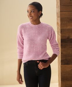 In deco dots, the Ella Sweater offers a vintage-inspired look with modern comfort. Made from acrylic, nylon, and spandex, this sweater provides both softness and stretch. The playful dot pattern adds a whimsical flair, making it a versatile piece for any occasion.