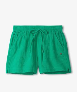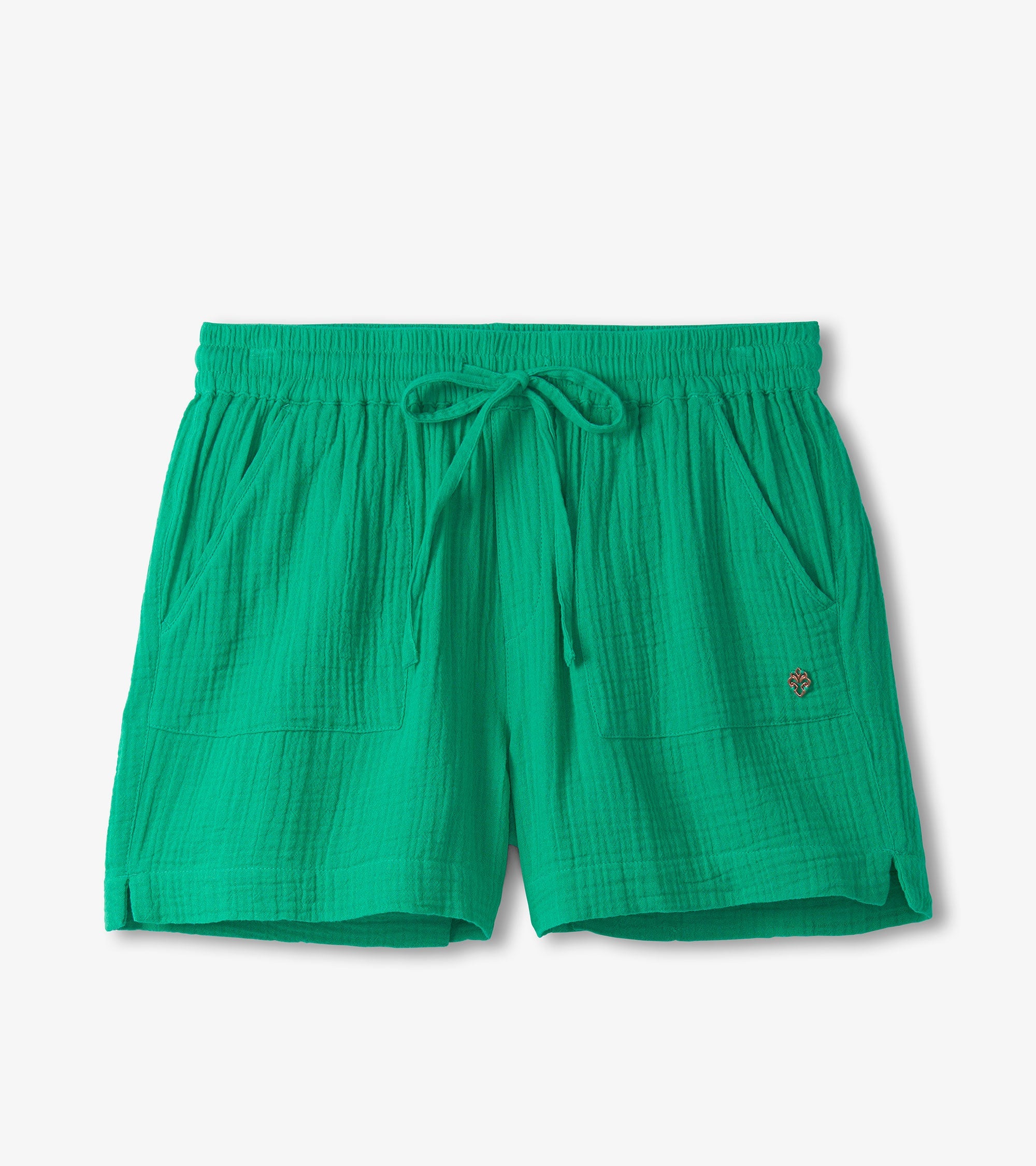 The Everywhere Shorts in Sea Green adds a splash of color to your casual wardrobe. Crafted from 100% cotton, they feature an elastic waist, a functional drawcord, deep front pockets, welt pockets on the back, and a flattering fit that offers both comfort and style. The vibrant green hue is perfect for pairing with neutral or patterned tops. These versatile shorts are ideal for relaxed summer days.