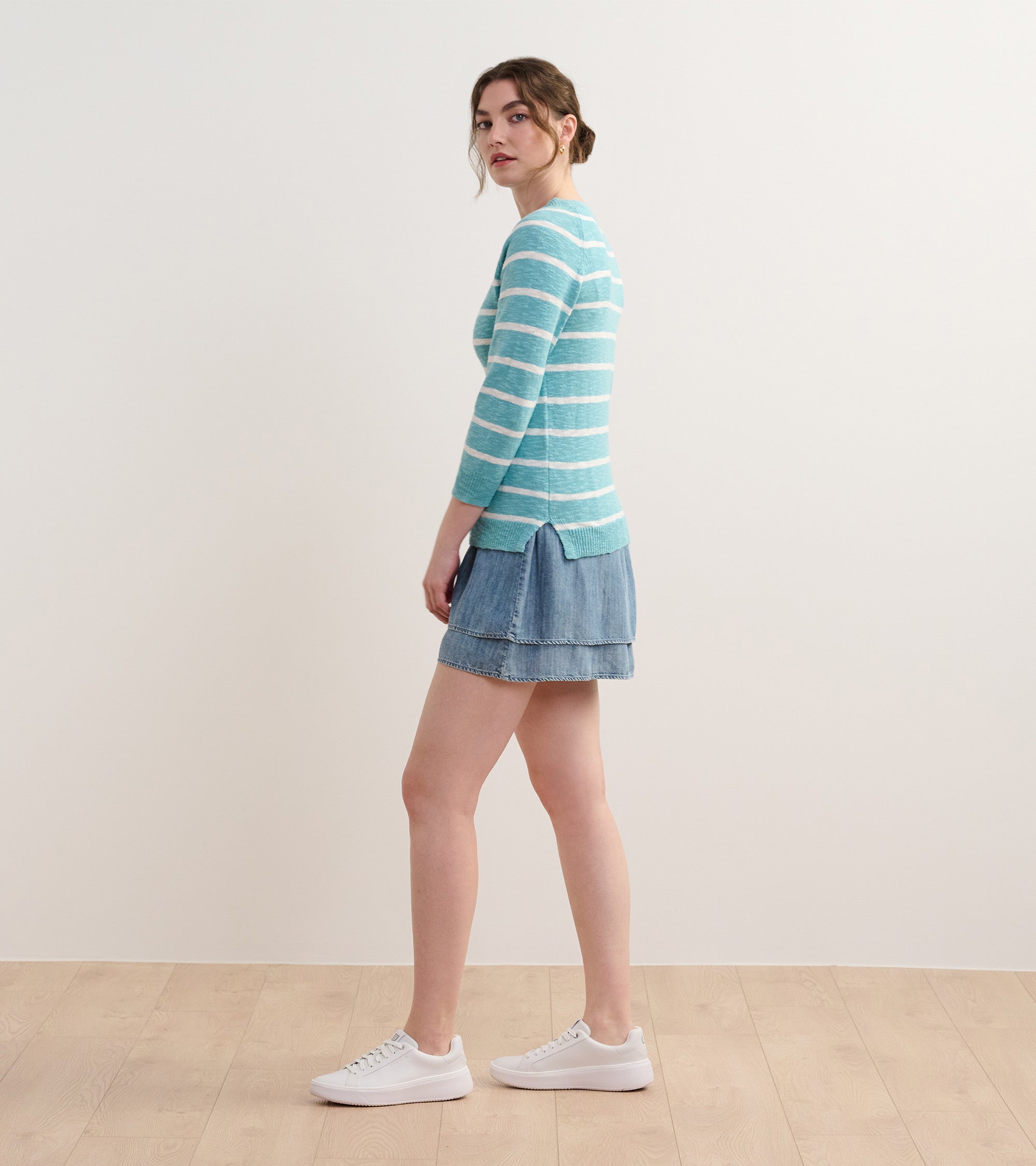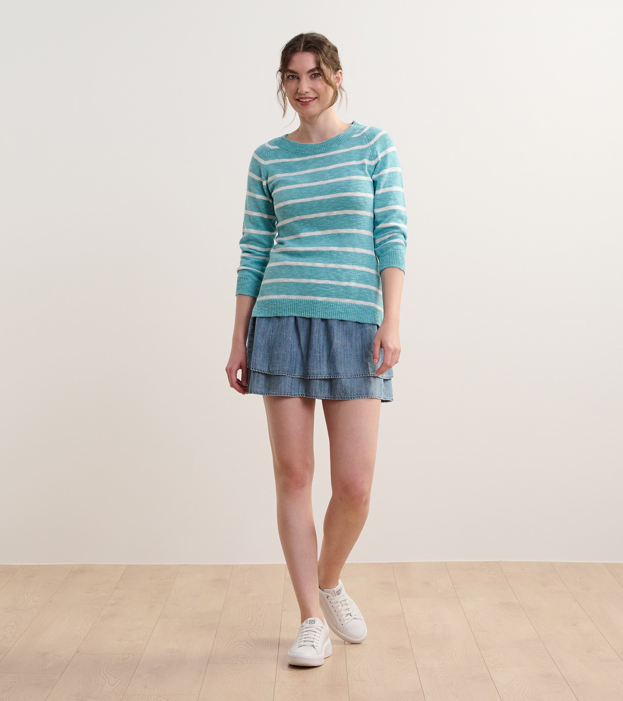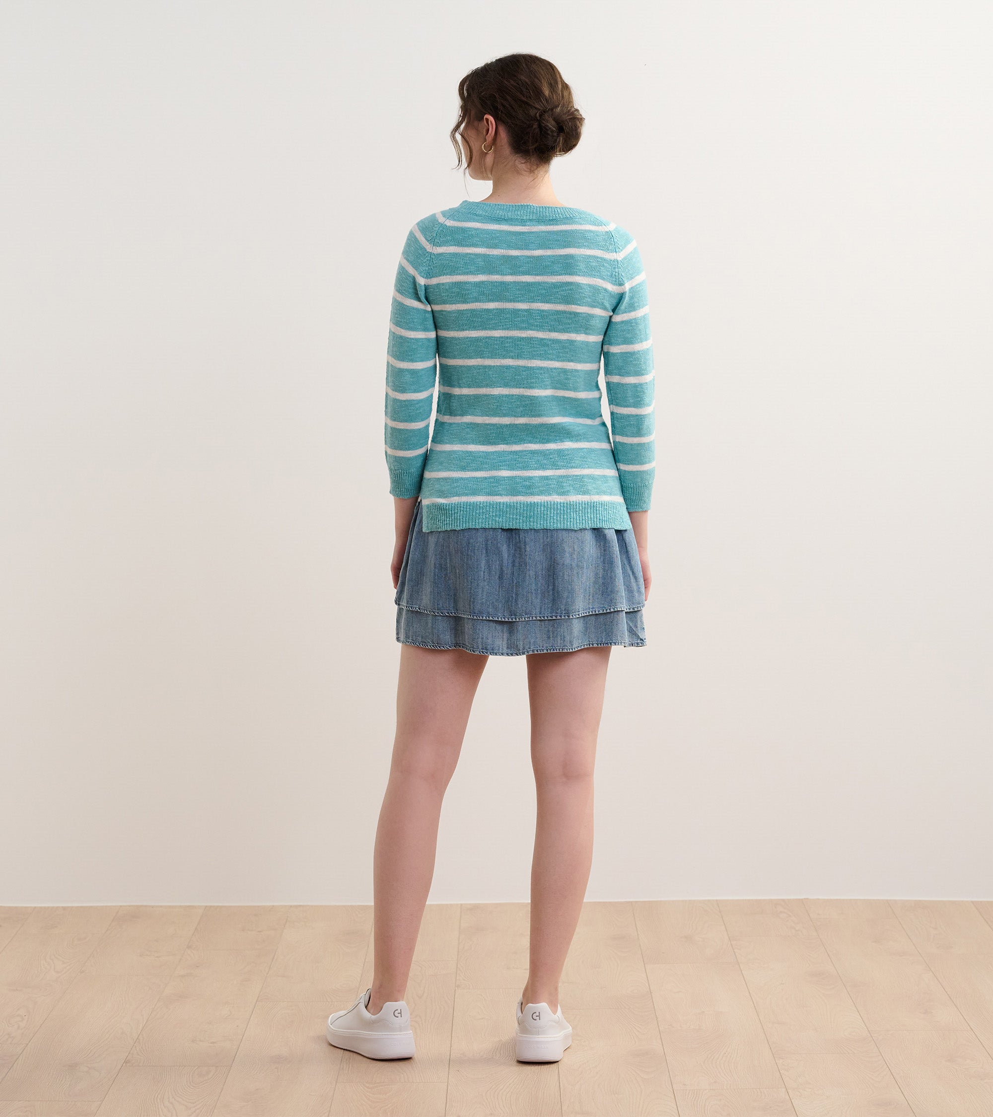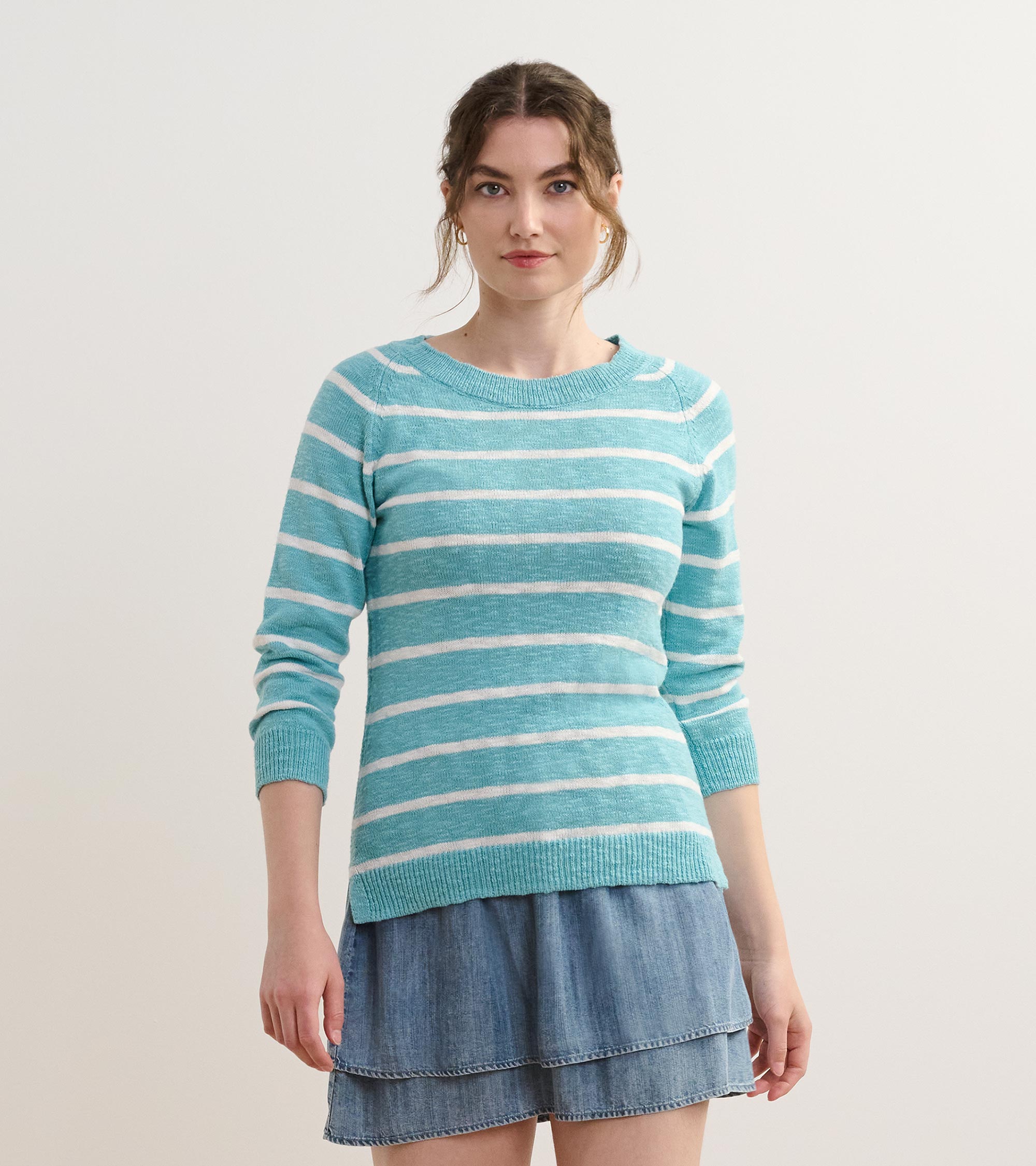 The Mariner Sweater in Aruba Blue Stripes is a vibrant take on a classic favorite. Made from 100% cotton, it’s designed to keep you comfortable and stylish. The bright blue color and versatile fit make it perfect for layering or wearing solo. Pair it with jeans or shorts for a casual, chic look.