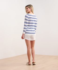 The Mariner Sweater in Navy and White Stripes brings timeless elegance to your wardrobe. Crafted from 100% cotton, it offers both comfort and durability. The nautical-inspired design is perfect for cool evenings or breezy days. Dress it up with slacks or keep it casual with denim for a polished look.