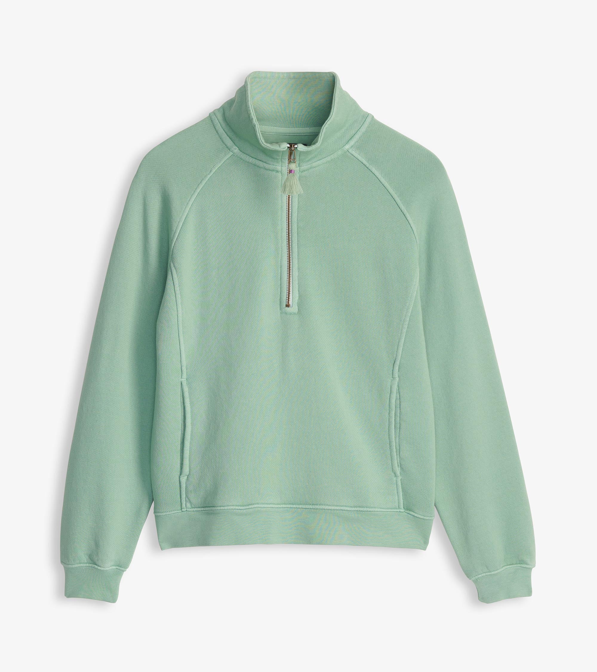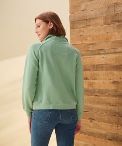Crafted from pure cotton, this sage green mock neck pullover offers a blend of comfort and effortless style. The soft fabric drapes beautifully, making it a perfect layering piece for cooler days. Its minimalistic design and flattering fit make it a versatile addition to any wardrobe, ideal for both casual and dressier occasions.