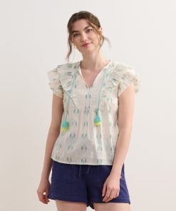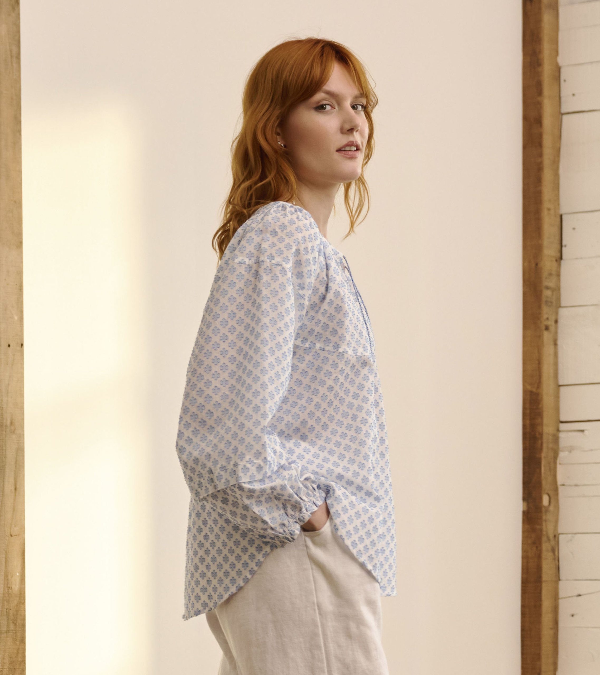 Our Naomi blouse offers sophisticated style with a hint of boho appeal. Embroidered details, playful tassels and beads on the neckline and long raglan sleeves make this top truly special. This is an easy, relaxed shape made from natural-coloured oxford cotton that’s designed to work perfectly with pants or skirts. Fit: This blouse runs big, we suggest choosing a smaller size than what you normally wear.
