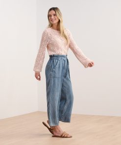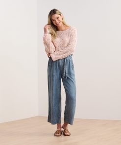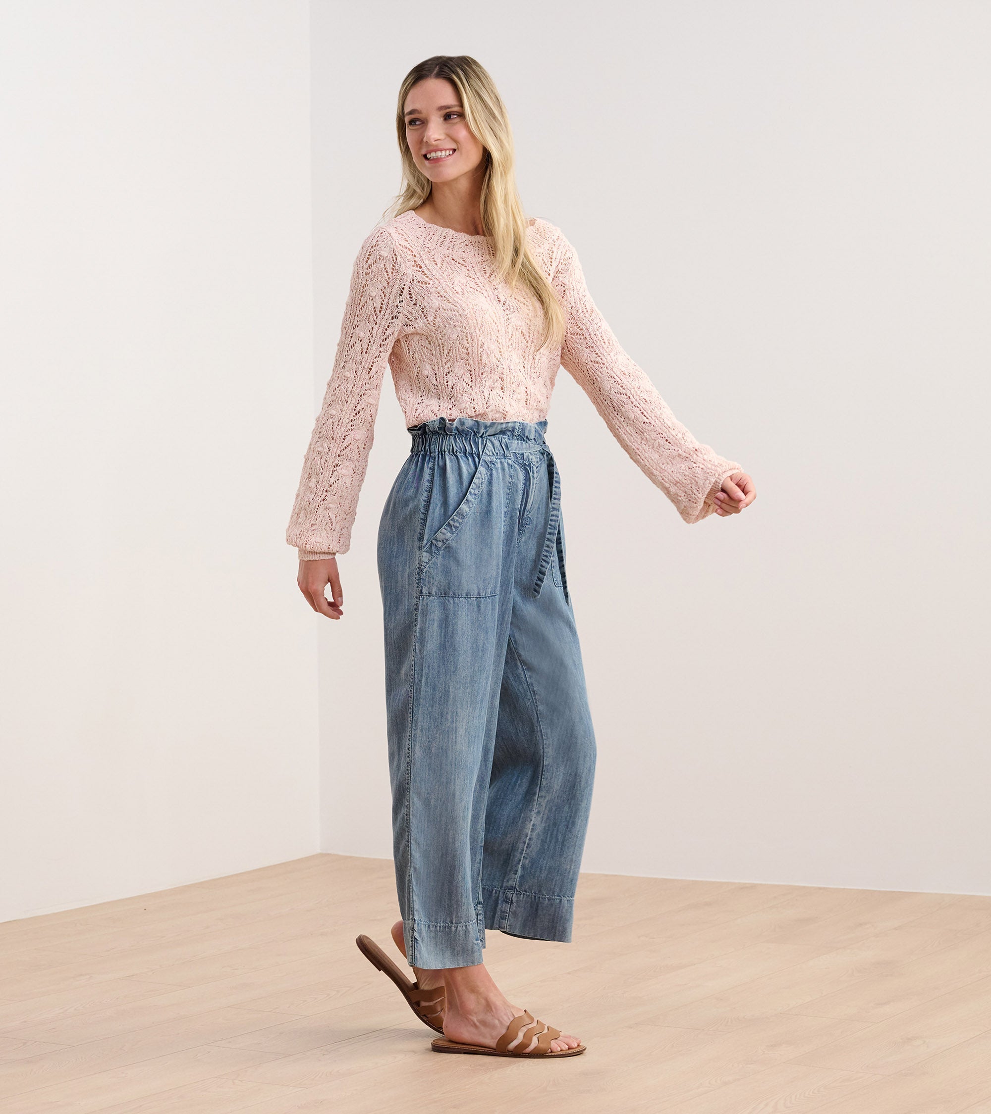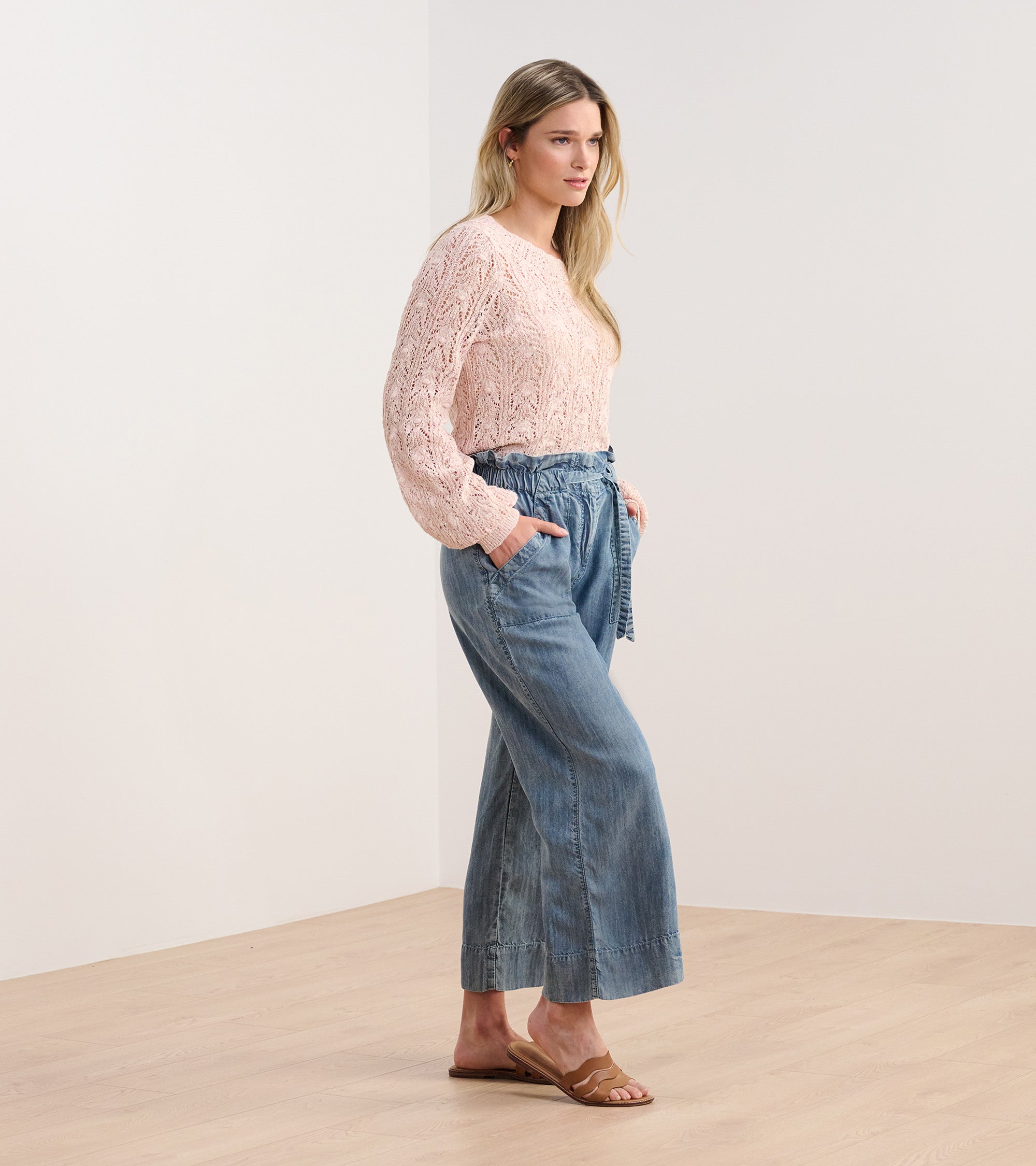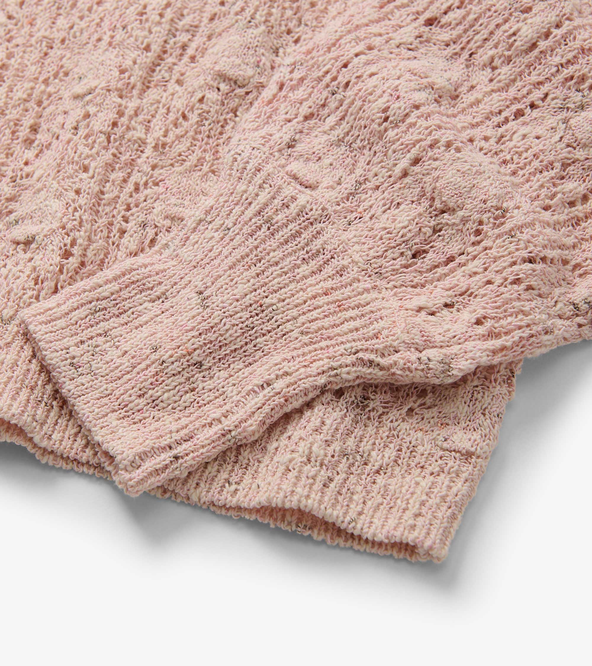 The Pointelle Sweater in Floral Blush is a delicate yet cozy addition to your wardrobe. Made from a blend of cotton, polyester, and bamboo, it features a scalloped neckline, ribbed cuffs, and an intricate pointelle knit design. The soft floral blush hue adds a feminine touch, making it perfect for layering or wearing solo. Pair it with jeans or a skirt for a polished look.
