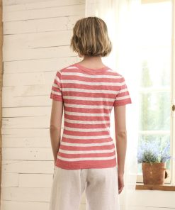 The Simone Knit Tee in Coral Stripes perfectly blends comfort and style. Made from a cotton viscose blend, this tee is soft and breathable, making it ideal for day-to-day activities. The coral stripes are lively and flattering, adding a vibrant touch to your casual wear.