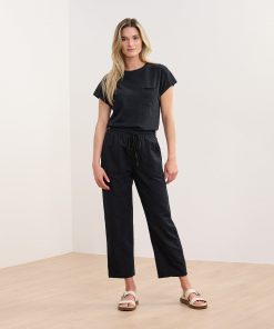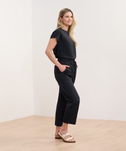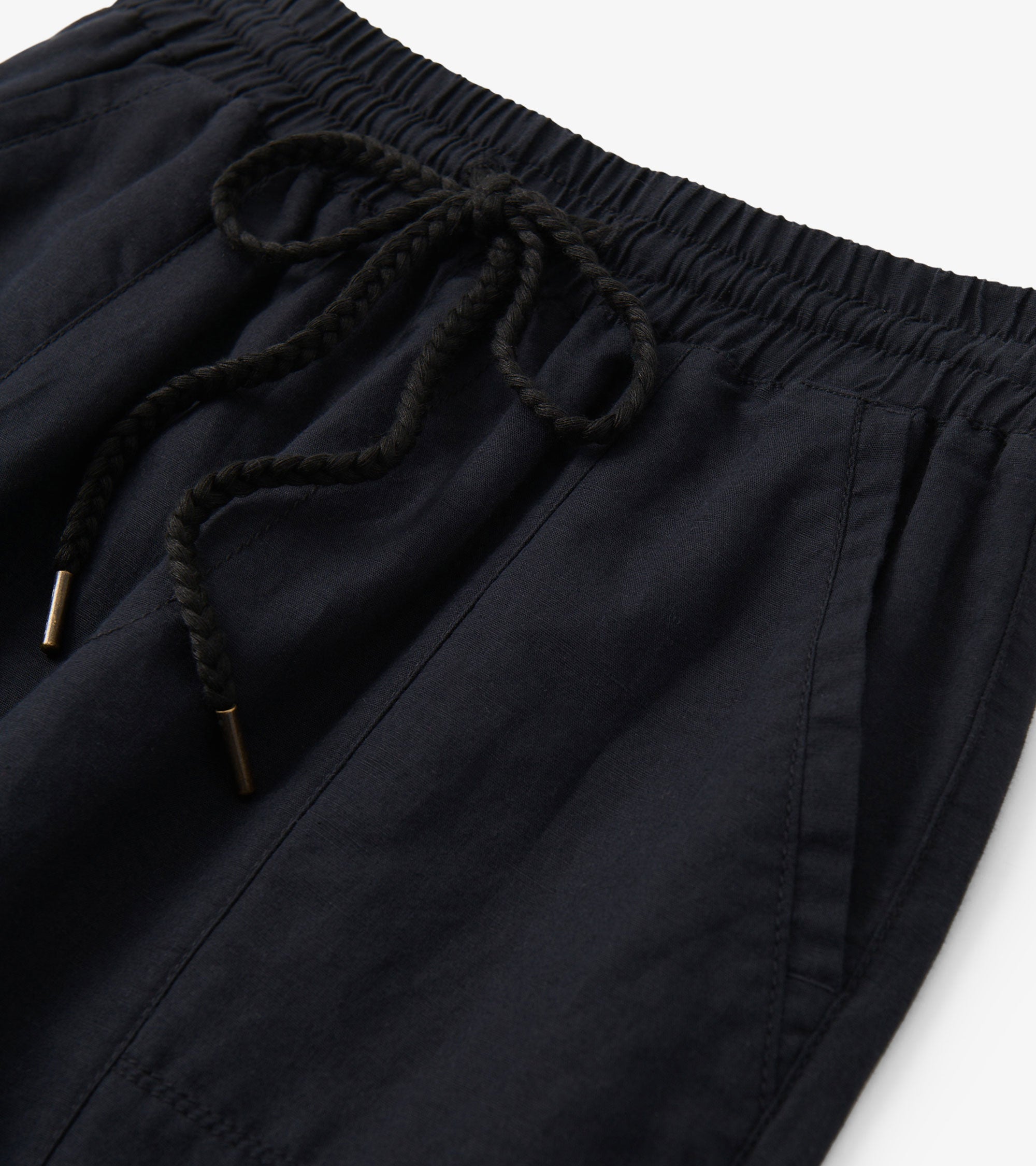 The Straight Leg Linen Pants in Black are a sophisticated choice for everyday wear. Crafted from a linen and cotton blend, this pull-on style offers an elastic waist, a functional braided draw cord, a tapered leg design, front and back patch pockets, a stylish center seam, and a sleek silhouette. The straight-leg design ensures a timeless look, making these pants perfect for both work and casual settings. Pair them with a blouse or a relaxed tee for effortless style.